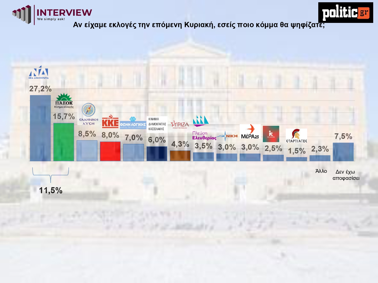 • Νέα Δημοκρατία: 27,2% (από 25%)