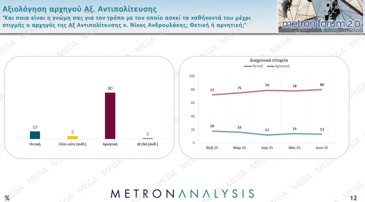 Ωστόσο, το ΠΑΣΟΚ δεν καρπώνεται την δυσαρέσκεια καθώς οι αρνητικές γνώμες φθάνουν το 83% και για τον ίδιο τον κ. Ανδρουλάκη στο 80%.