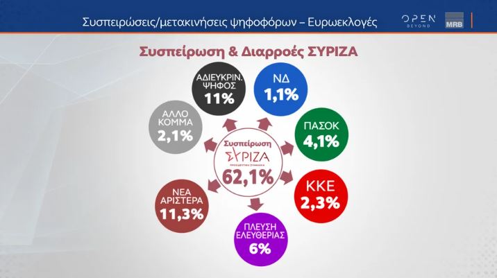 Ο ΣΥΡΙΖΑ που έχει ανεβάσει τη συσπείρωσή του στο 62%, δίνει: