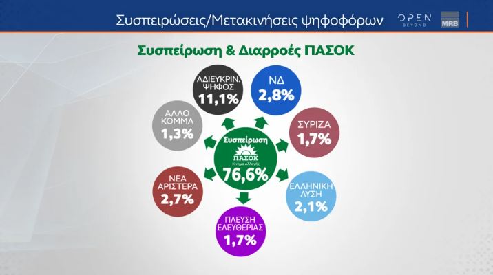 Το ΠΑΣΟΚ που ανέβασε τη συσπείρωσή του στο 77% δίνει:
