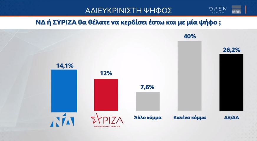 Το 40% των αναποφάσιστων απαντά πως δεν θέλει να κερδίσει έστω με μια ψήφο ούτε ο ΣΥΡΙΖΑ, ούτε η ΝΔ.