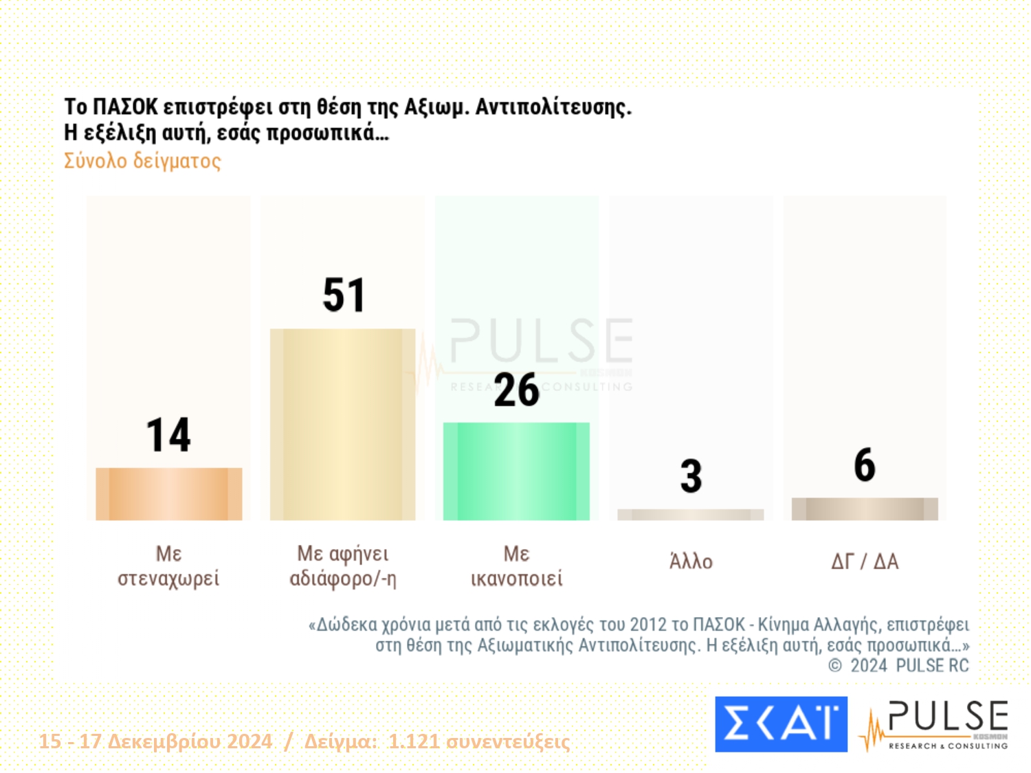 Οι αλλαγές στο κοινοβουλευτικό τοπίο μετά τις αποχωρήσεις από τον ΣΥΡΙΖΑ, επανέφεραν μετά από χρόνια το ΠΑΣΟΚ στη θέση της αξιωματικής αντιπολίτευσης. Πόσο αφορά το εκλογικό σώμα η συγκεκριμένη εξέλιξη;