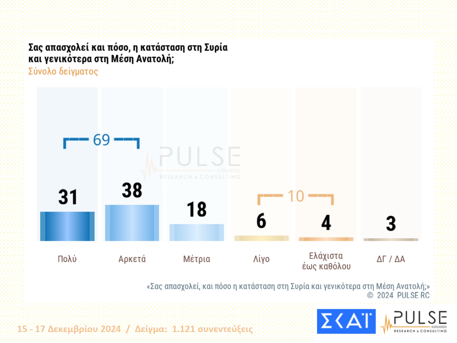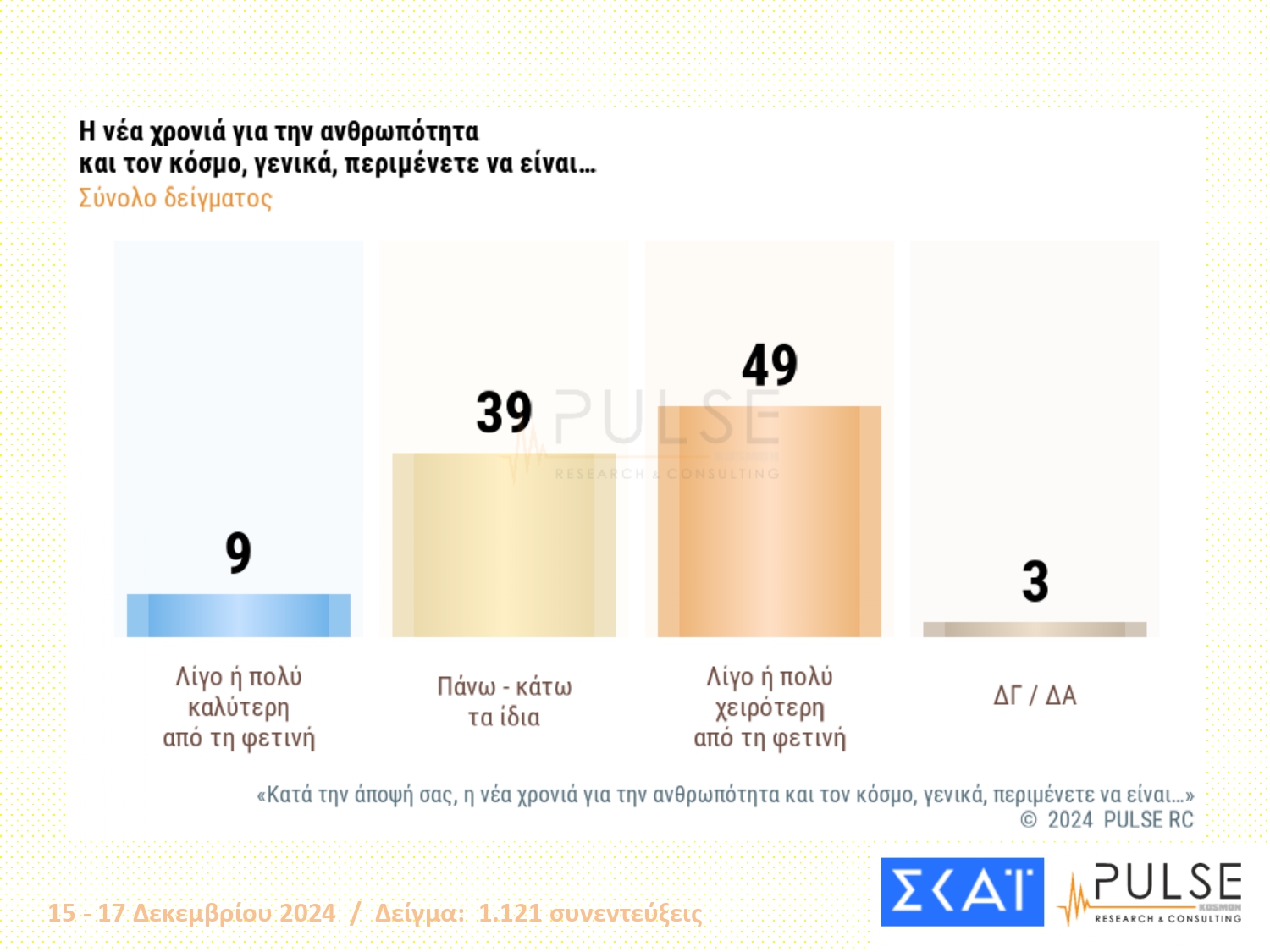 Οι 7 στους 10 ερωτηθέντες δήλωσαν ότι προβληματίζονται από τις διεθνείς εξελίξεις, ενώ οι 8 στους 10 θεωρούν ότι η κατάσταση θα παραμείνει ίδια ή θα χειροτερέψει το 2025.