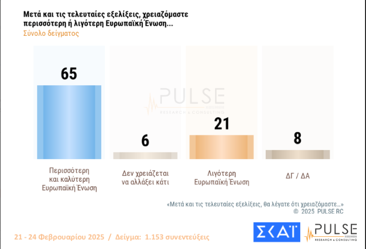 H έρευνα της Pulse, μετρά και τις προσδοκίες των πολιτών για την Ευρωπαϊκή Ένωση και το μέλλον.