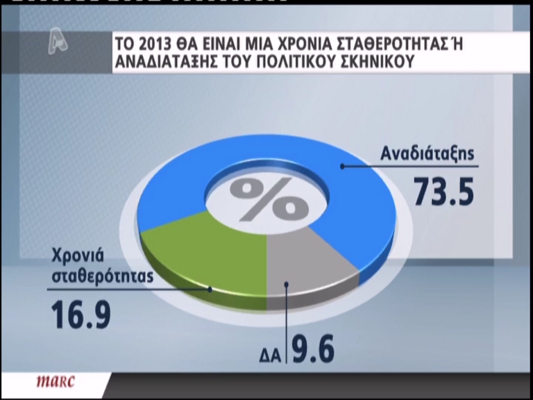 Ενώ το 73,5% θεωρεί πως το 2013 θα είναι χρονιά αναδιάταξης για το πολιτικό σκηνικό.