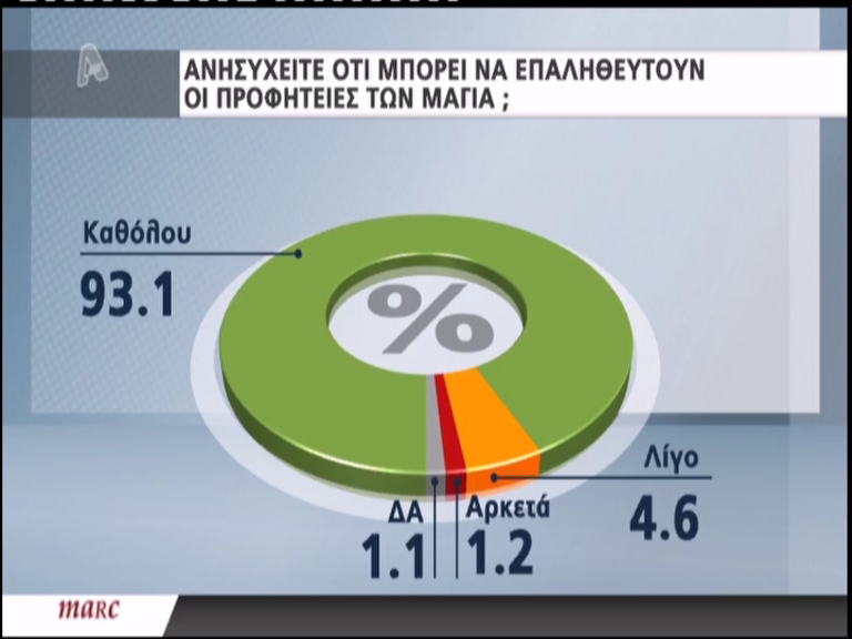 Τέλος, για την πιθανότητα να επαληθευτούν οι προφητείες των Μάγια, σε συντριπτικό ποσοστό 93,1%, οι ερωτηθέντες απάντησαν αρνητικά.