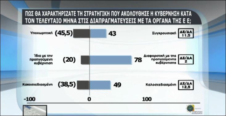 Το 60,5% πιστεύει ότι η ακολουθούμενη στρατηγική διαπραγμάτευσης είναι σωστή, έναντι 29% που λέει όχι.
