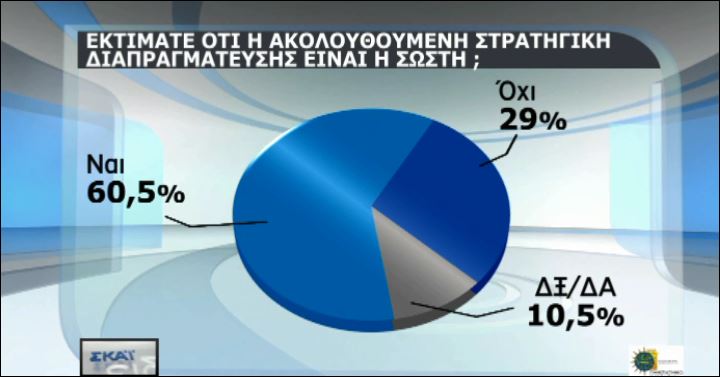 Το 60,5% πιστεύει ότι η ακολουθούμενη στρατηγική διαπραγμάτευσης είναι σωστή, έναντι 29% που λέει όχι.