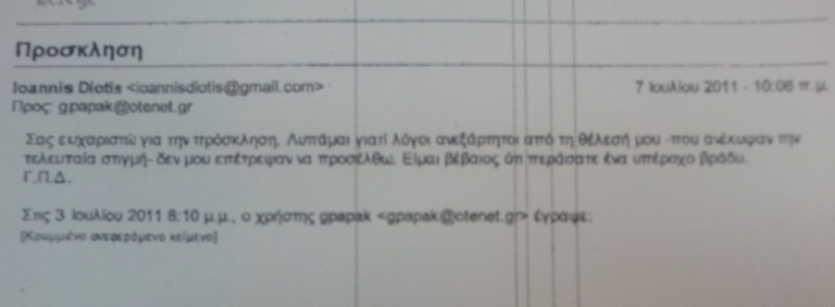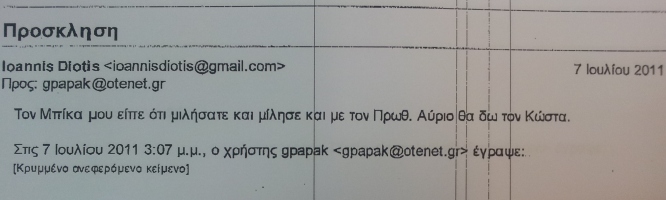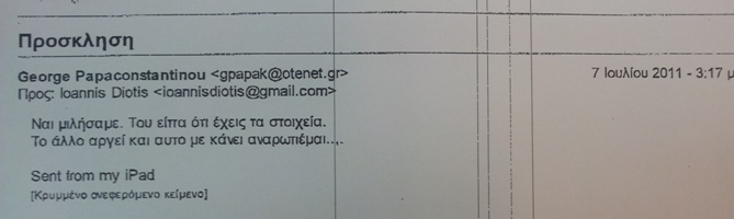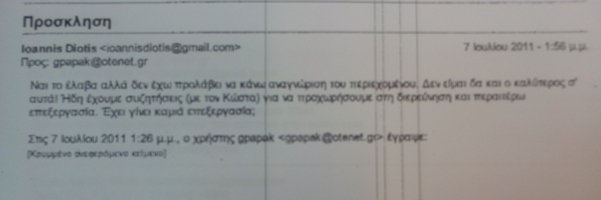 Διαβάστε τα mail που αντάλλαξαν ο Ιωάννης Διώτης και ο Γιώργος Παπακωνσταντίνου: