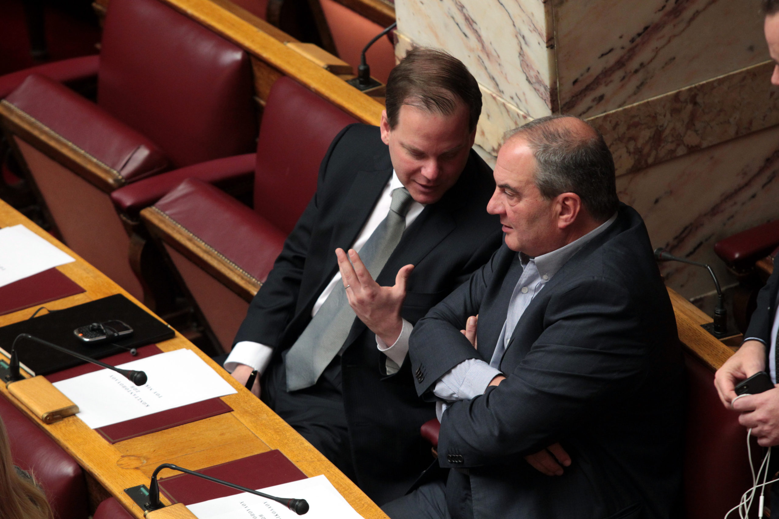Ο πρώην πρωθυπουργός Κώστας Καραμανλής και ο Κώστας Καραμανλής τζούνιορ, γιος του Αχιλλέα Καραμανλή, κάθισαν και μαζί στα έδρανα της Βουλής.