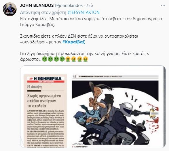 Το σκίτσο σχολιάζεται στα μέσα κοινωνικής δικτύωσης και έχει προκαλέσει την αντίδραση χρηστών του Twitter. Δείτε ορισμένες αναρτήσεις: