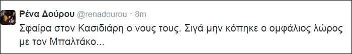 «Σφαίρα στον Κασιδιάρη ο νους τους. Σιγά μην κόπηκε ο ομφάλιος λώρος με τον Μπαλτάκο…», έγραψε η κυρία Δούρου.