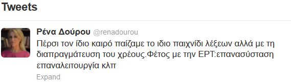 Για «παιχνίδι λέξεων» το οποίο είχε παιχθεί και πέρσι  κάνει λόγο στο Twitter η Ρένα Δούρου με αφορμή την ΕΡΤ.