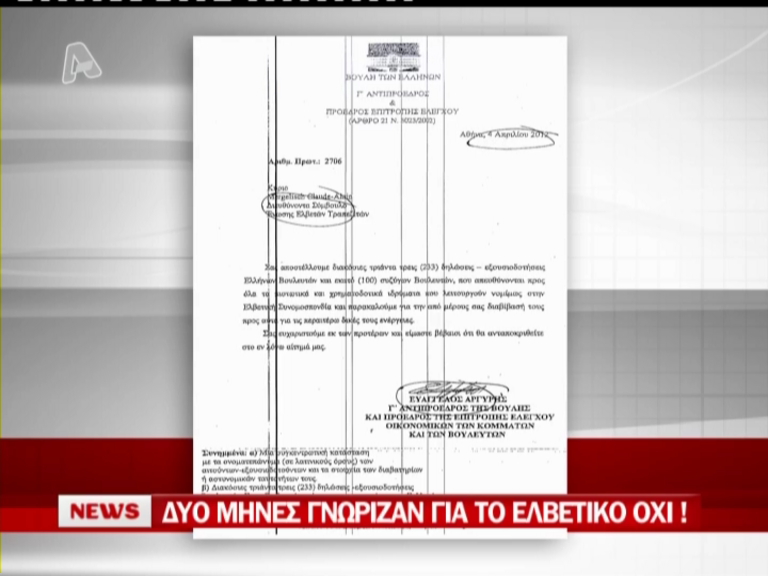 Εδώ και 2 μήνες γνώριζαν στη Βουλή την απάντηση των Ελβετών!