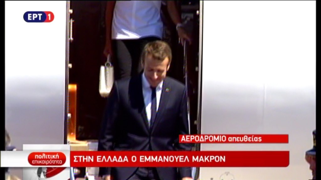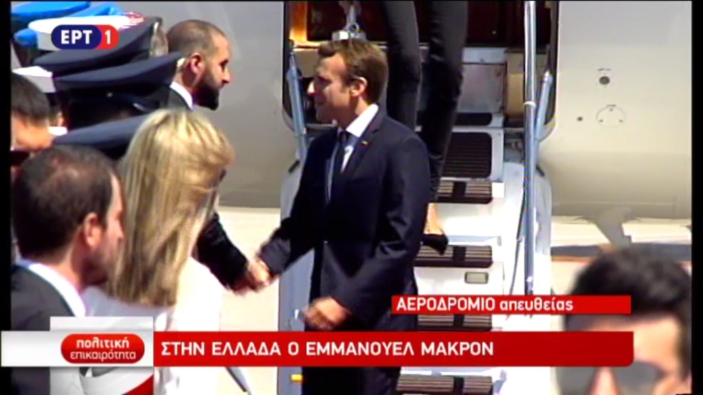 Κατέβηκε από το αεροπλάνο ο Γάλλος πρόεδρος, Εμανουέλ Μακρόν. Τον συνοδεύει η σύζυγός του Μπριζίτ. Στο αεροδρόμιο “Ελευθέριος Βενιζέλος” τους υποδέχθηκε ο κυβερνητικός εκπρόσωπος και υπουργός Επικρατείας Δημήτρης Τζανακόπουλος.
