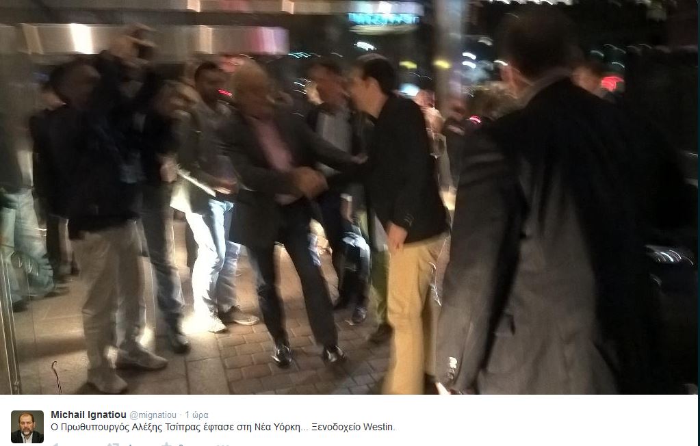 Στη φωτογραφία (από το @ignatiou) Ο Α. Τσίπρας φτάνει στο ξενοδοχείο.