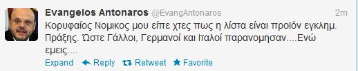 Δείτε τι έγραψε στο λογαριασμό του στο twitter ο Ευάγγελος Αντώναρος: