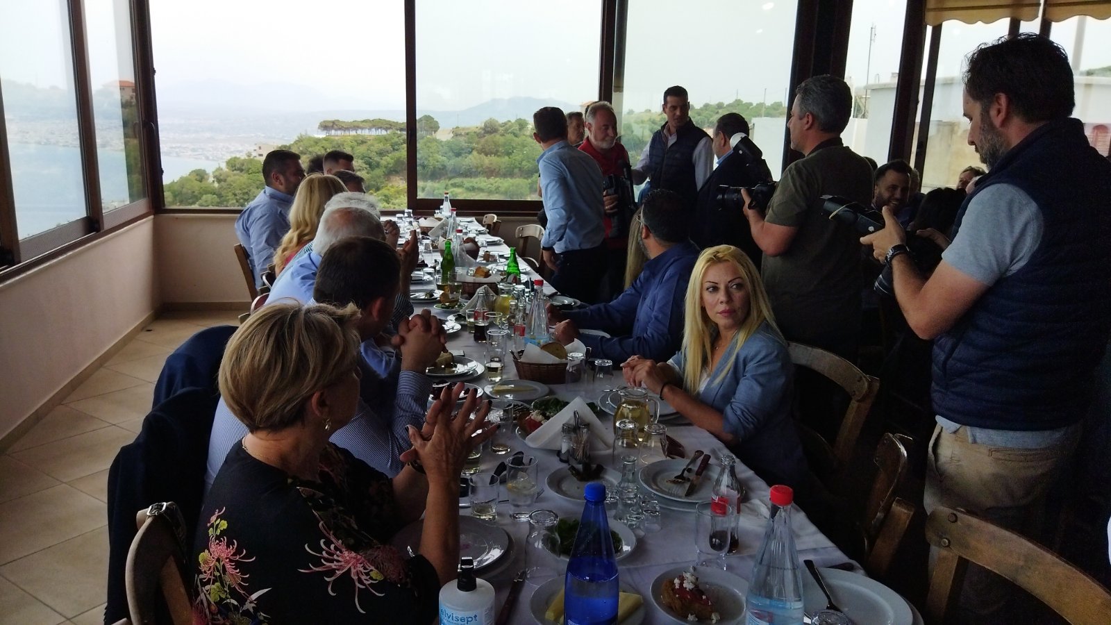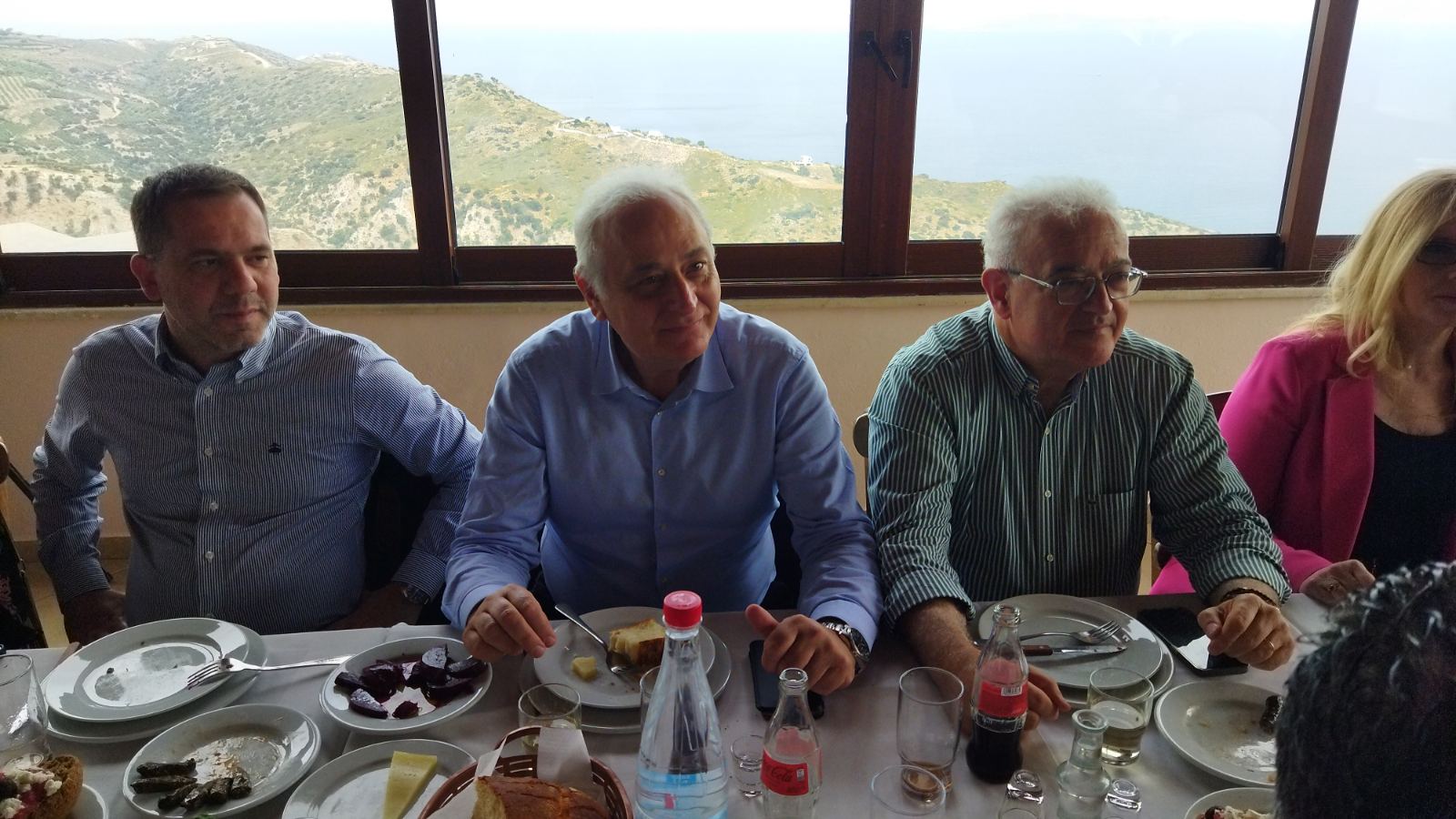 Σε χαλαρό κλίμα, λίγες ώρες μετά την προεκλογική του ομιλία στο Ηράκλειο, ο πρόεδρος του ΠΑΣΟΚ-ΚΙΝΑΛ είχε την δυνατότητα να συζητήσει χαλαρά με τους παρευρισκόμενους, να γευτεί κρητικούς μεζέδες και τσικουδιά.