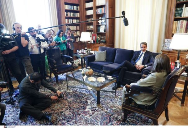 Η Πρόεδρος της Δημοκρατίας είπε υποδεχόμενη τον Κυρ. Μητσοτάκη στο Προεδρικό Μέγαρο ότι πριν από λίγο ο Πρόεδρος της Βουλής Κωνσταντίνος Τασούλας της παρέδωσε τα επίσημα εκλογικά αποτελέσματα και ότι κάλεσε τον πρωθυπουργό για να του παραδώσει την πρώτη διερευνητική εντολή σχηματισμού κυβέρνησης.