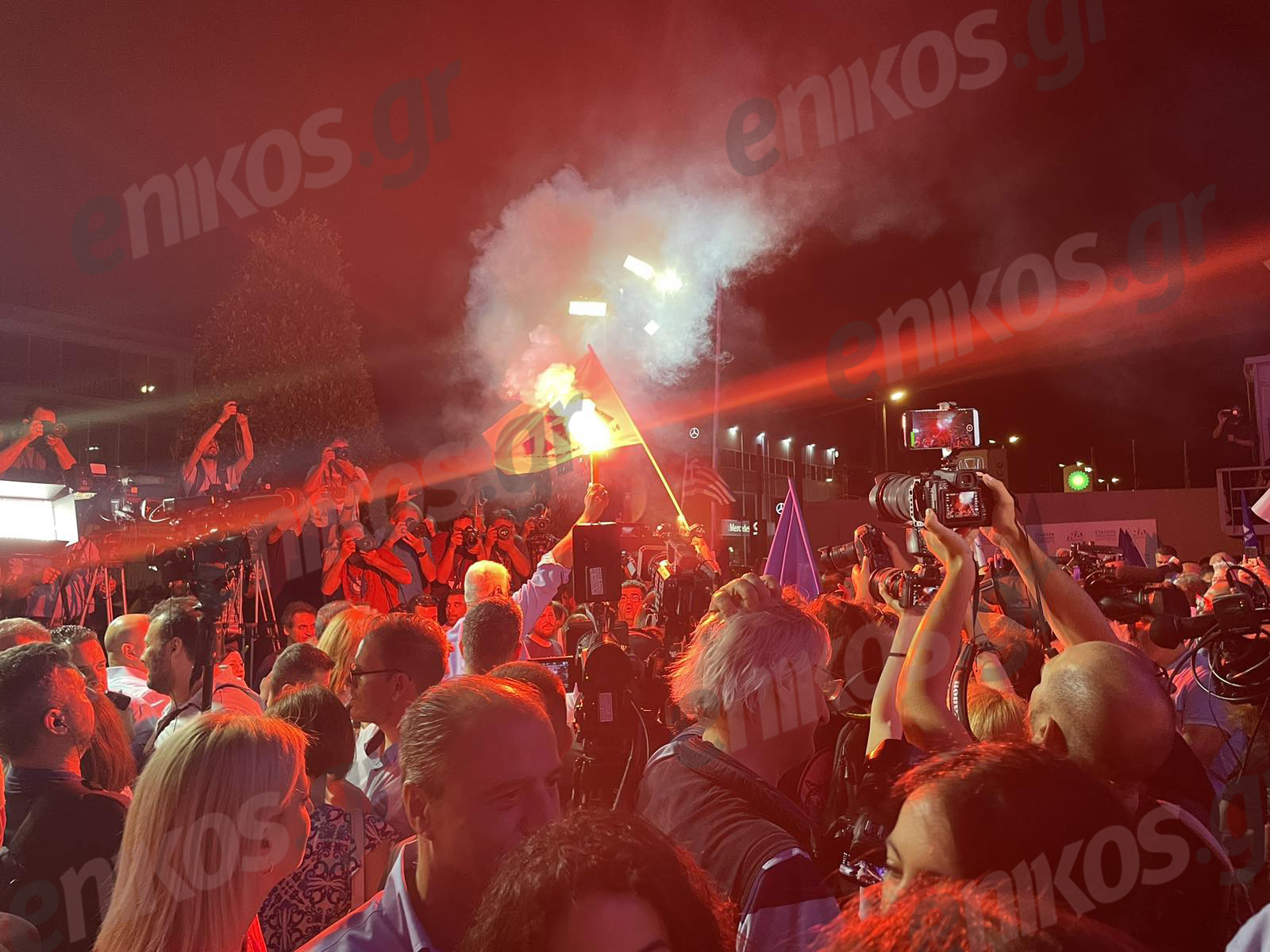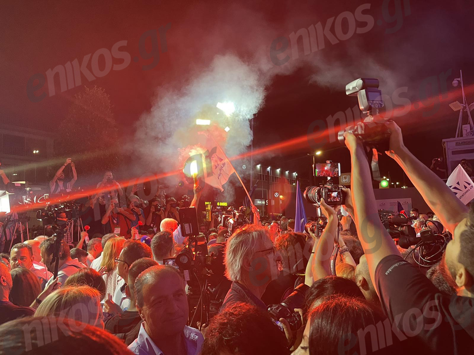 Μάλιστα, οι ψηφοφόροι και τα μέλη του κόμματος ξέσπασαν σε έξαλλους πανηγυρισμούς τη στιγμή που ο πρόεδρος της ΝΔ απηύθυνε χαιρετισμό, ενώ άναψαν ακόμη και καπνογόνο έξω από τα γραφεία του κόμματος στην Πειραιώς.