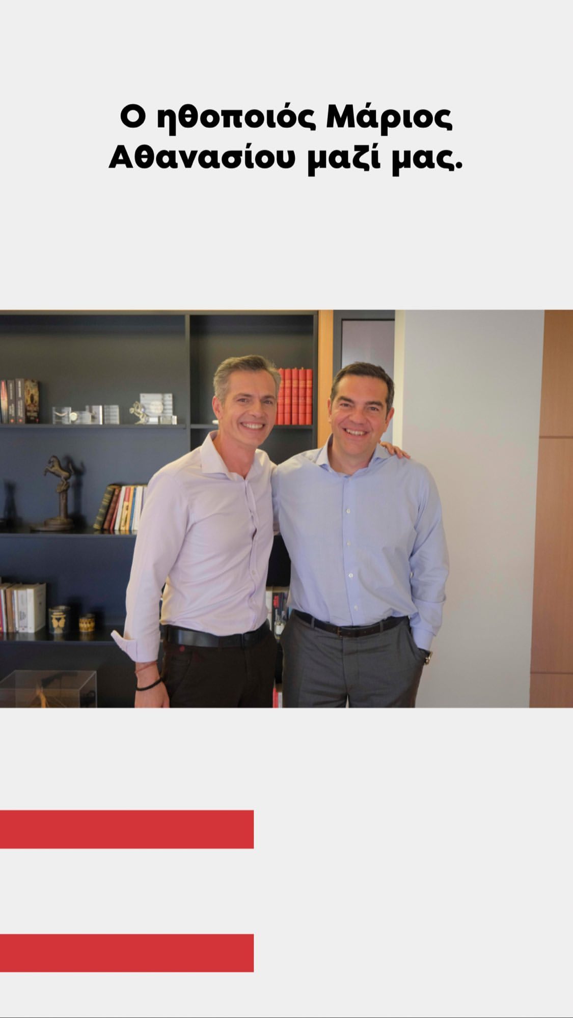 «Ο ηθοποιός Μάριος Αθανασίου μαζί μας» έγραψε ο πρόεδρος του ΣΥΡΙΖΑ για την υποψηφιότητα του γνωστού ηθοποιού.