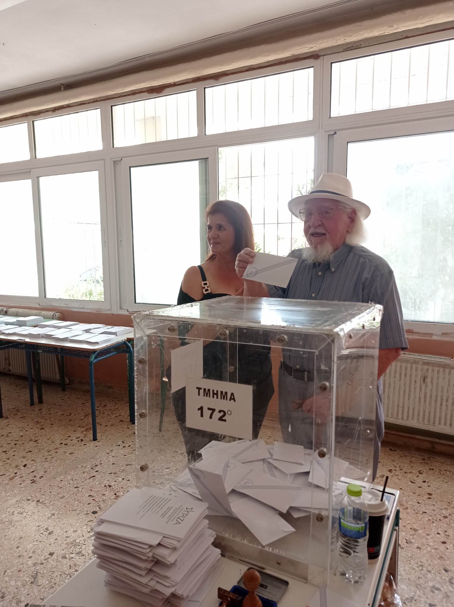 Ο Σεραφείμ Αθανασίου δεν πτοήθηκε από την ζέστη και μετέβη στο 172ο εκλογικό τμήμα του Βόλου, στο 4ο Γυμνάσιο, προκειμένου να ασκήσει το εκλογικό του δικαίωμα.