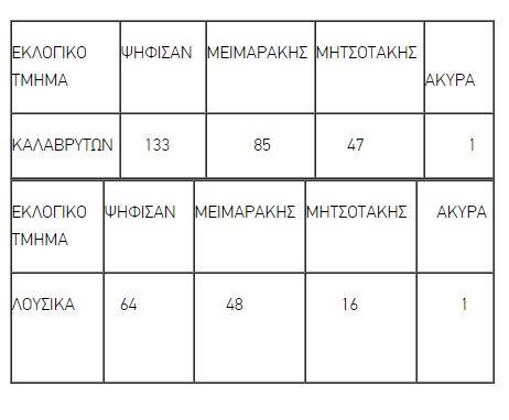 Πρωτιά του Ευάγγελου Μεϊμαράκη στο εκλογικό τμήμα στα Καλάβρυτα και τα Λουσικά Αχαΐας, δείχνουν τα πρώτα ανεπίσημα αποτελέσματα.
