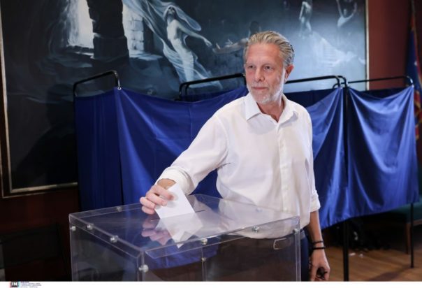 Στο Πνευματικό Κέντρο του Δήμου Αθηναίων ψήφισε για τον δεύτερο γύρο των εσωκομματικών εκλογών στο ΠΑΣΟΚ, ο Παύλος Γερουλάνος.