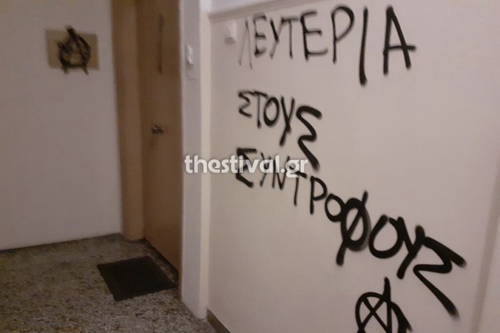 Άγνωστοι πέταξαν τρικάκια κι έγραψαν συνθήματα στην είσοδο του πολιτικού γραφείου της βουλευτή της Ν.Δ. Έλενας Ράπτη.