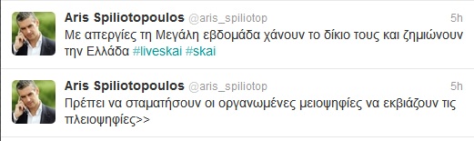 Στο twitter ο Άρης Σπηλιωτόπουλος συζητά με την Ελληνοφρένεια…