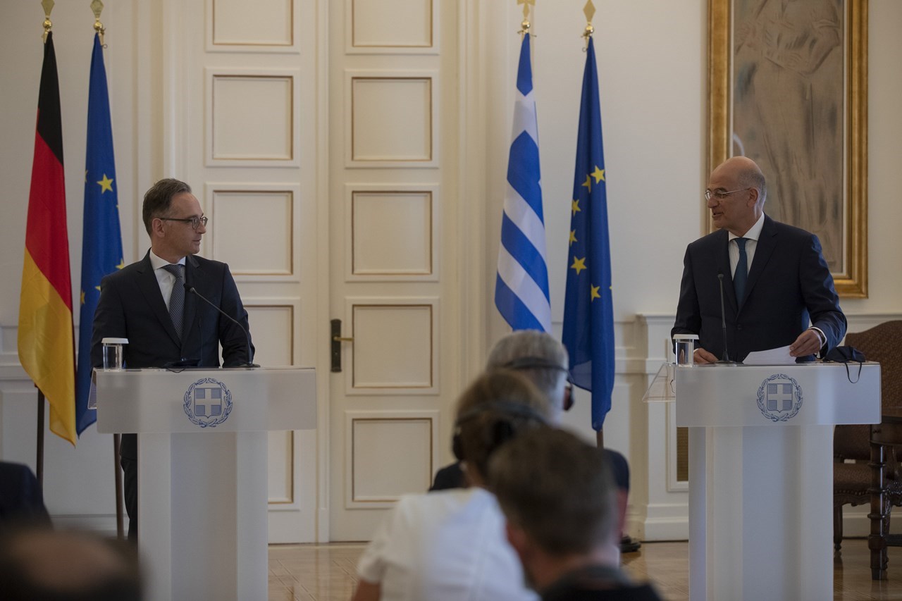 Ισχυρό μήνυμα στην Τουρκία έστειλαν ο Έλληνας υπουργός Εξωτερικών, Νίκος Δένδιας και ο Γερμανός ομόλογός του Χάικο Μάας κατά τη διάρκεια της συνάντησής τους την Τρίτη στην Αθήνα. Η Τουρκία πρέπει να σταματήσει τις γεωτρήσεις για φυσικούς πόρους σε ύδατα της ανατολικής Μεσογείου για να σημειωθεί πρόοδος στους δεσμούς ΕΕ-Τουρκίας, δήλωσε ο Γερμανός υπουργός Εξωτερικών Χάικο Μάας.