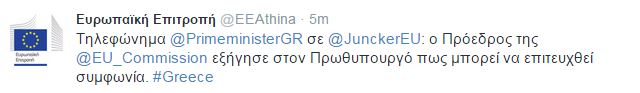 Επίσημη επιβεβαίωση από την Ε.Ε – Τηλεφώνημα Τσίπρα στον Γιούνκερ – ΤΩΡΑ Enikos Newsroom 13:34, Τρίτη 30 Ιουνίου 2015 πολιτική Η Ευρωπαϊκή Επιτροπή επιβεβαίωσε και επίσημα την τηλεφωνική επικοινωνία που είχαν σήμερα, ο πρωθυπουργός Αλέξης Τσίπρας, με τον πρόεδρο της Κομισιόν, Ζαν Κλοντ Γιούνκερ. ΓΙΟΥΝΚΕΡ ΕΠΙΒΕΒΑΙΩΣΗ ΕΥΡΩΠΑΙΚΗ ΕΠΙΤΡΟΠΗ ΤΗΛΕΦΩΝΗΜΑ ΤΣΙΠΡΑΣ Μοιράσου το: σχολίασε κι εσύ (0 σχόλια) Ακολουθήστε το enikos.gr στο Google News και μάθετε πρώτοι όλες τις ειδήσεις Δείτε όλες τις τελευταίες ειδήσεις από την Ελλάδα και τον Κόσμο στο enikos.gr Ειδήσεις Ροή Ειδήσεων 1 ώρα πριν Αγρότες: Την Τρίτη η απόφαση για διάλογο ή κλιμάκωση των κινητοποιήσεών τους – Πώς χαρακτηρίζουν τις ανακοινώσεις Τσιάρα και οι επόμενες κινήσεις 46 λεπτά πριν Τραμπ για Ουκρανία: «Είμαστε πιο κοντά σε συμφωνία από ποτέ» – «Πολυεθνική δύναμη» προτείνουν οι Ευρωπαίοι 1 ώρα πριν Κυψέλη: Η 16χρονη που μαχαίρωσε την 14χρονη είχε συλληφθεί 3 φορές στο παρελθόν – Έβριζε καθηγητές, έβαζε φωτιές σε κάδους και εκβίαζε συμμαθητές της 1 ώρα πριν Χαλκιδική: Πώς δρούσαν οι αστυνομικοί που συνελήφθησαν για κλήσεις που δεν έκοβαν – Η «ετήσια συνδρομή» για τα μπλόκα της Τροχαίας και οι «δωρεές» 29 λεπτά πριν Τρομοκρατική επίθεση στο Σίδνεϊ: Θλίψη για τα 15 θύματα – Οργή στην εβραϊκή κοινότητα που προειδοποιούσε επί δύο χρόνια 2 ώρες πριν Ύπνος: Η αρχαία μορφή άσκησης που αποδεικνύεται αποτελεσματική στην αντιμετώπιση της αϋπνίας, σύμφωνα με μελέτη 3 ώρες πριν Αριθμολογία: Ο τυχερός σας αριθμός, ανάλογα με τον μήνα γέννησής σας 4 ώρες πριν Πώς να μην μαραίνονται γρήγορα τα κομμένα λουλούδια: Το λάθος στην τοποθέτηση του βάζου που πρέπει να αποφεύγετε 49 λεπτά πριν Επιστήμονες ίσως έλυσαν το μυστήριο γύρω από τα Χόμπιτ – Νέα έρευνα αποκαλύπτει πώς εξαφανίστηκαν 22 λεπτά πριν ΚΚΕ: Το νομοσχέδιο – «λαιμητόμος» του υπουργείου Άμυνας δεν πρέπει να περάσει 29 λεπτά πριν Τρομοκρατική επίθεση στο Σίδνεϊ: Θλίψη για τα 15 θύματα – Οργή στην εβραϊκή κοινότητα που προειδοποιούσε επί δύο χρόνια 32 λεπτά πριν Ινστιτούτο Prolepsis: Κρίσιμα εμπόδια και βασικές προϋποθέσεις για την ενίσχυση της υγείας στα σωφρονιστικά ιδρύματα – Ευρήματα από το έργο PARTNER 39 λεπτά πριν Χανιά: Ηλικιωμένες μητέρες κρατουμένων προσπάθησαν να περάσουν ναρκωτικά στις φυλακές 46 λεπτά πριν Τραμπ για Ουκρανία: «Είμαστε πιο κοντά σε συμφωνία από ποτέ» – «Πολυεθνική δύναμη» προτείνουν οι Ευρωπαίοι ENIKOS NETWORK Πότε το χρόνιο ροχαλητό να αποτελέσει ένδειξη κινδύνου για την καρδιά; Τι λένε οι ειδικοί Μάριος Θεμιστοκλέους: Το ΕΣΥ ενισχύεται, εκσυγχρονίζεται, αλλάζει ΕΒΕΠ για αγροτικές κινητοποιήσεις: Κάθε επιπλέον εβδομάδα προσθέτει περίπου 200 εκατ. ευρώ ζημιά Τι προβλέπει το νομοσχέδιο του υπουργείου Εθνικής Άμυνας – Oι αλλαγές στους μισθούς Σύγχρονος Νοστράδαμος: Προειδοποιεί για «μεγάλο γεγονός» τους επόμενους μήνες που θα συγκλονίσει τη Βρετανία και τον κόσμο Τεστ παρατηρητικότητας: Μπορείτε να βρείτε τις 3 διαφορές στις εικόνες με έναν πιγκουίνο σε 14 δευτερόλεπτα περισσότερα 23:27 , Δευτέρα 15 Δεκεμβρίου 2025 ΚΚΕ: Το νομοσχέδιο – «λαιμητόμος» του υπουργείου Άμυνας δεν πρέπει να περάσει «Η κυβέρνηση κατέθεσε για συζήτηση στη βουλή το νομοσχέδιο με τίτλο: “Χάρτης Μετάβασης των Ενό... 21:15 , Δευτέρα 15 Δεκεμβρίου 2025 Κόντρα Θεοδωρικάκου – Φάμελλου στη Βουλή – Τα «πυρά» της Κωνσταντοπούλου «Η αύξηση του πληθωρισμού είναι στην Ελλάδα και στην ΕΕ 35%. Τόση είναι όμ