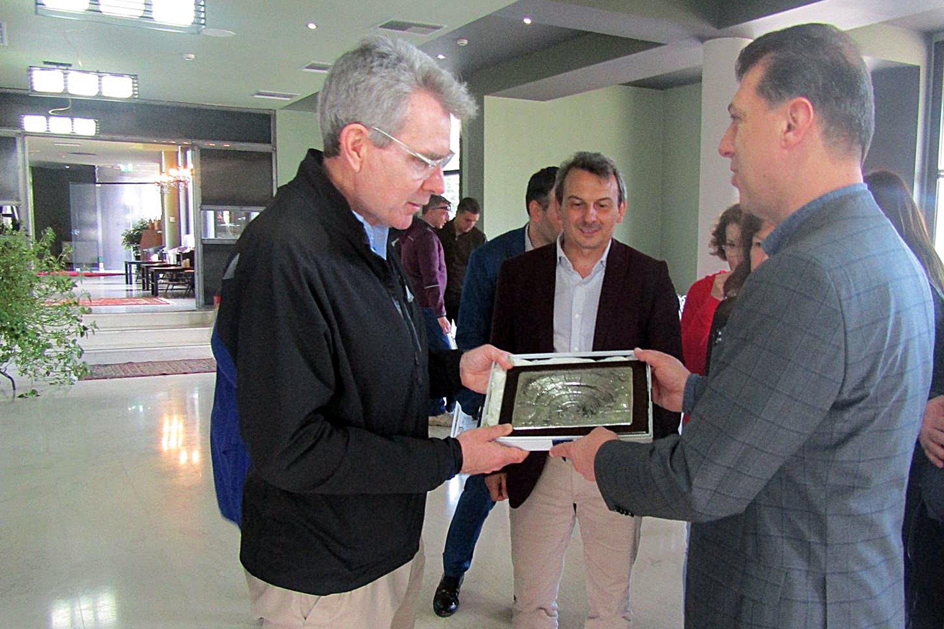 Με την ολοκλήρωση της επίσκεψης, ο δήμαρχος δώρισε στον Αμερικανό πρέσβη ένα ασημένιο αναμνηστικό στο οποίο απεικονίζεται το αρχαίο θέατρο της Δωδώνης κι ένα καλάθι με τοπικά προϊόντα. Ο Αμερικανός πρέσβης ανταπέδωσε, προσφέροντας ένα βιβλίο – αφιέρωμα στην Καλιφόρνια.Πηγή πληροφοριών και φωτό: ΑΠΕ- ΜΠΕ