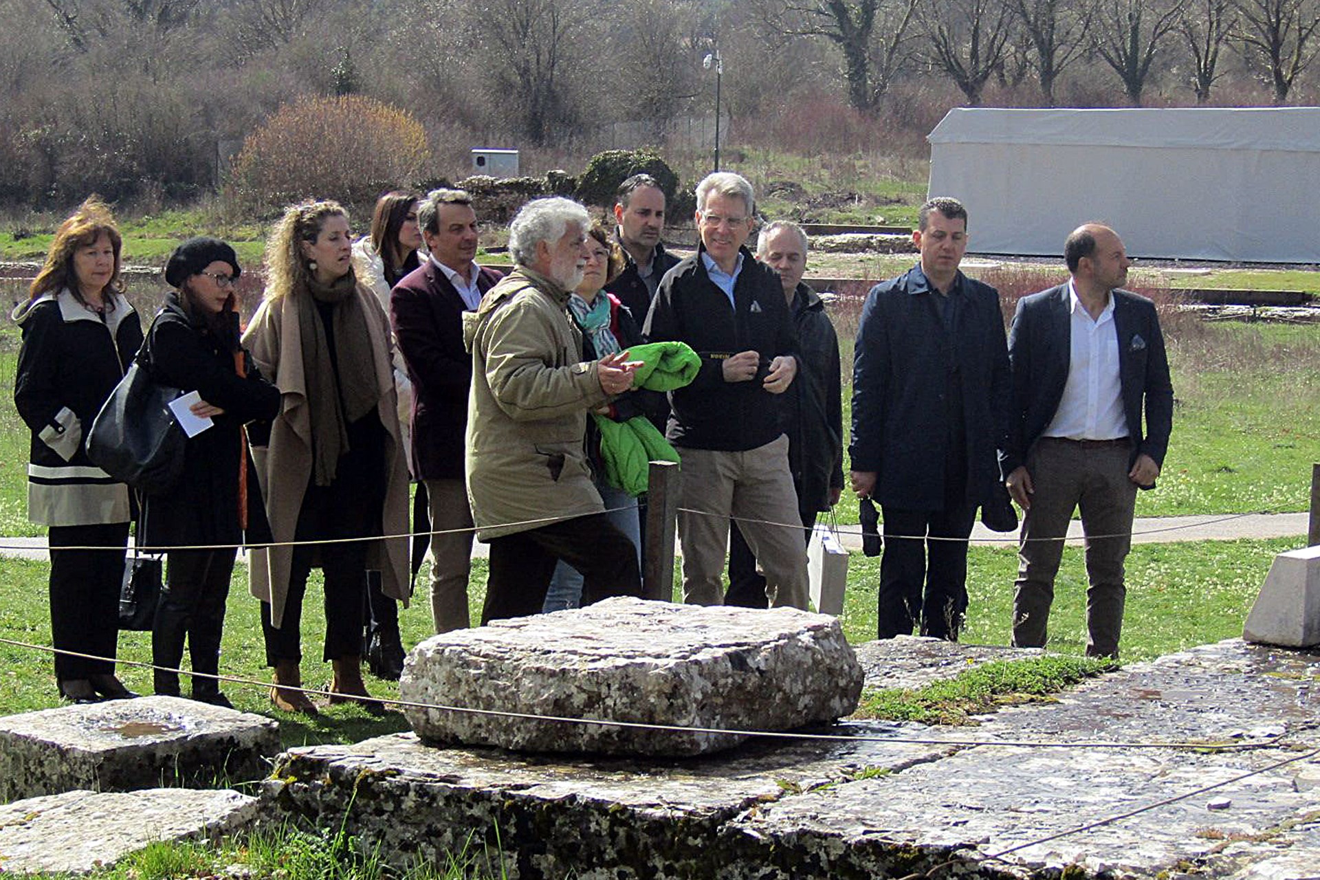 Η ξενάγηση έγινε από τον προϊστάμενο της Εφορείας Αρχαιοτήτων Κωνσταντίνο Σουέρεφ και την αρχαιολόγο Ελένη Σκαλιστή, υπό καταρρακτώδη βροχή αρχικά, αλλά η ηλιοφάνεια στην συνέχεια, επέτρεψε στον πρέσβη και την συνοδεία του, να δουν από κοντά, τόσο το αρχαίο θέατρο όσο και τα υπόλοιπα μνημεία.