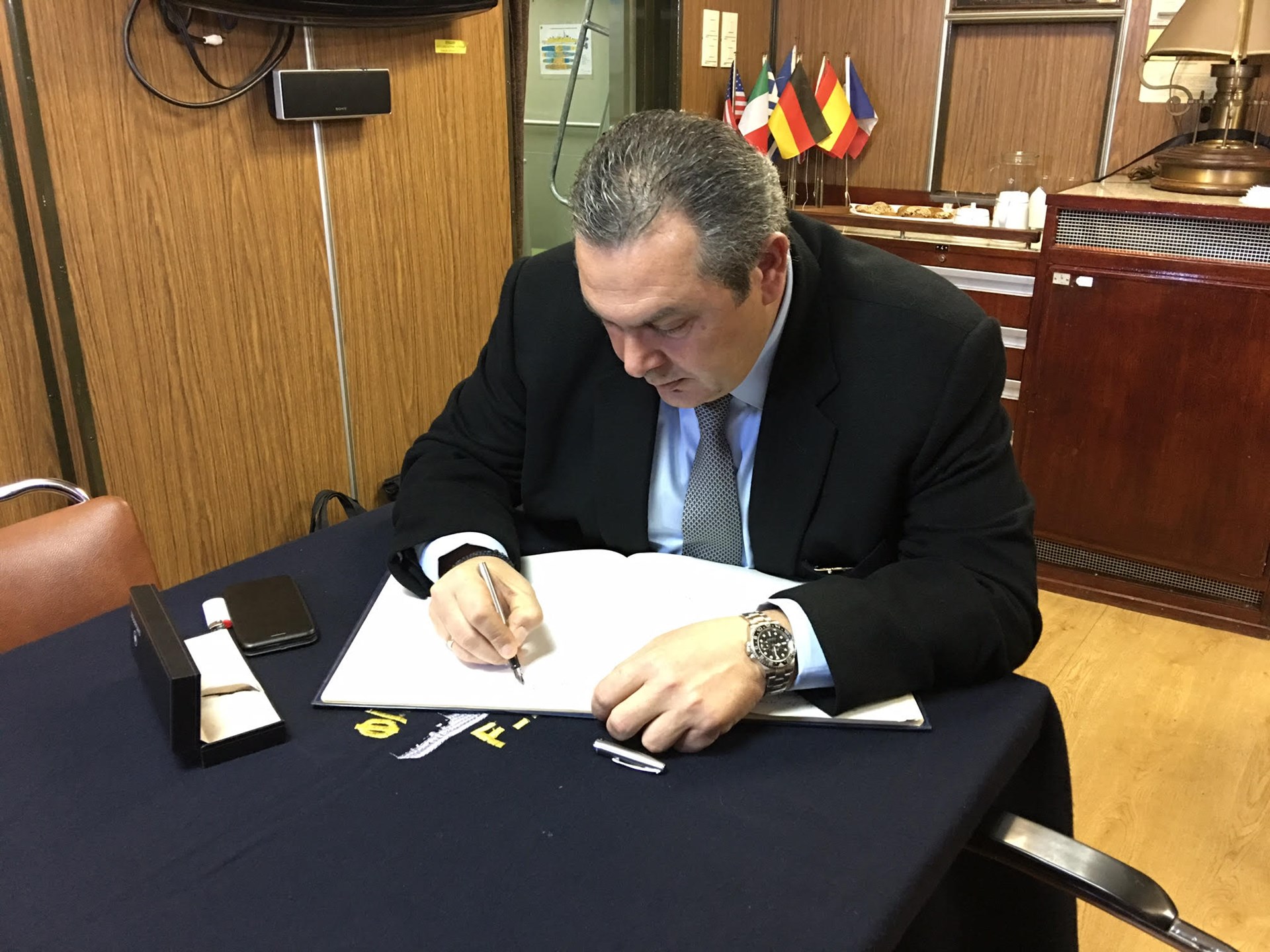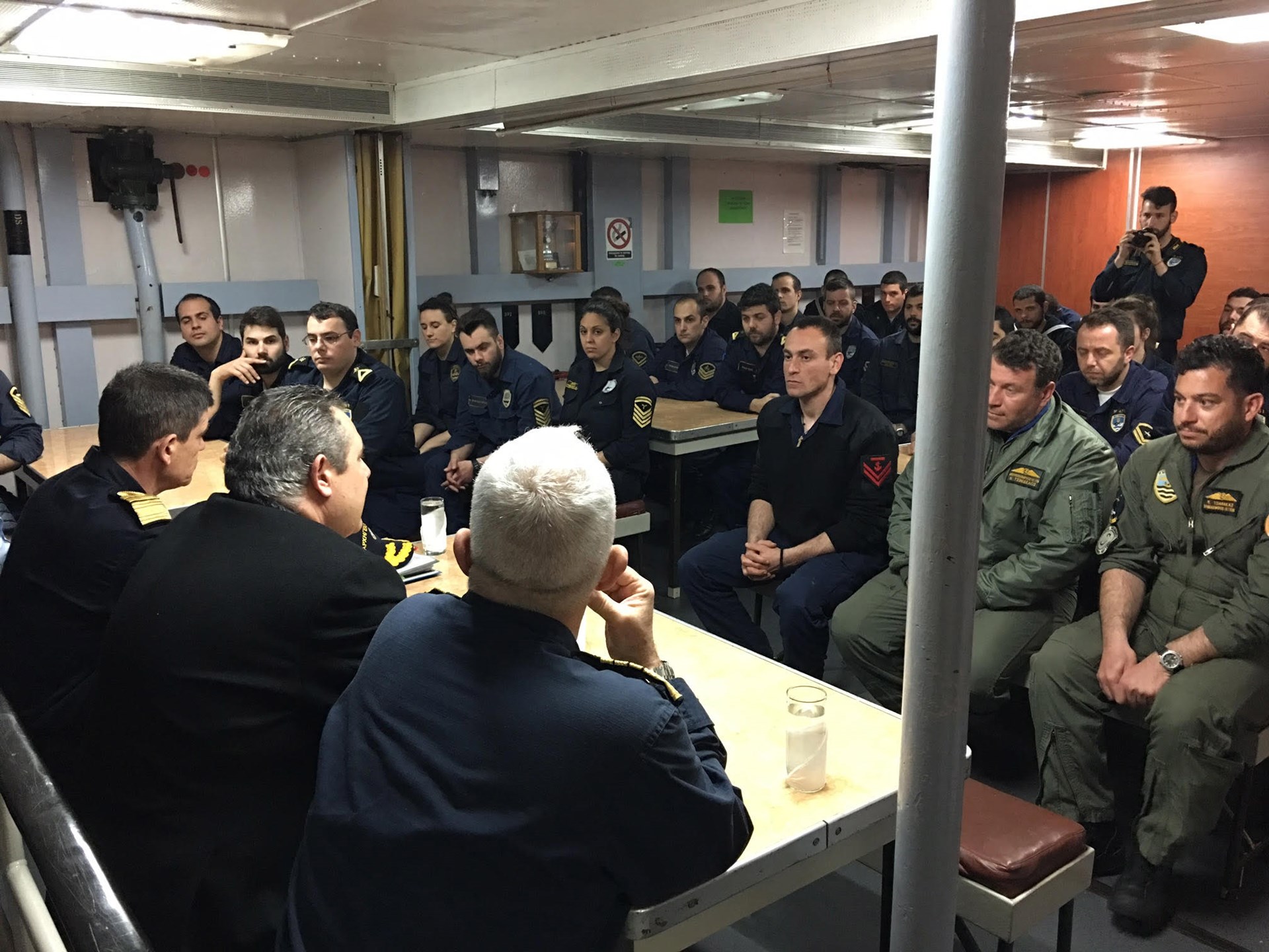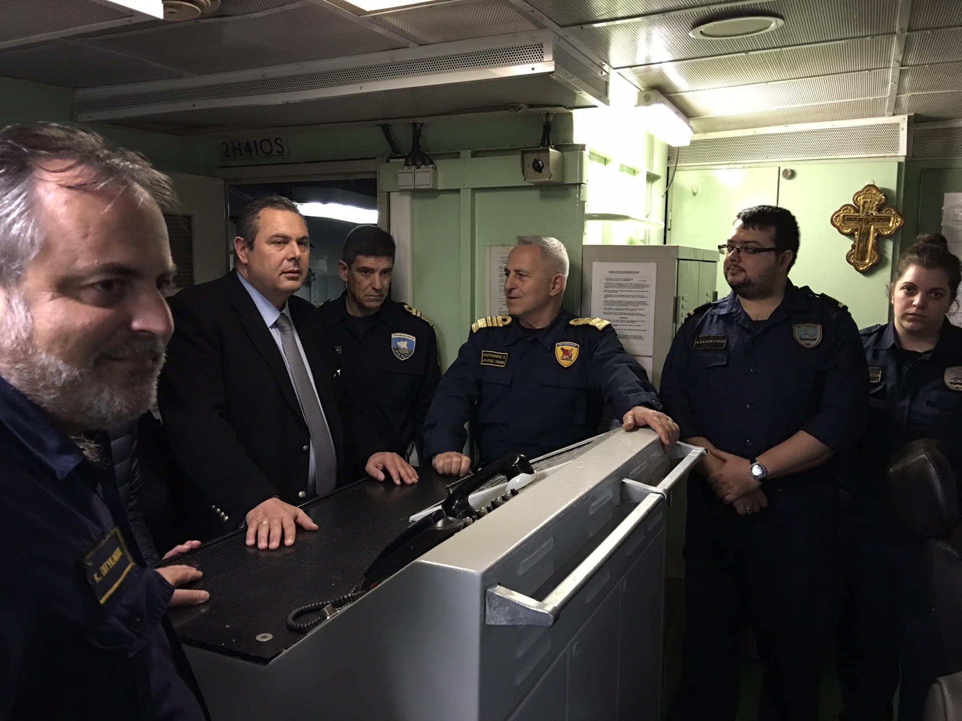 Ο υπουργός Εθνικής Άμυνας Πάνος Καμμένος, συνοδευόμενος από τον Αρχηγό ΓΕΕΘΑ Ναύαρχο Ευάγγελο Αποστολάκη ΠΝ και τον Αρχηγό Στόλου Αντιναύαρχο Ιωάννη Παυλόπουλο ΠΝ, επισκέφτηκε σήμερα τη Φρεγάτα «ΛΗΜΝΟΣ», η οποία εκτελεί καθήκοντα πλοίου επιχείρησης φυλακής σκοπούντος και στο πλαίσιο προετοιμασίας της προγραμματισμένης Άσκησης «ΑΣΤΡΑΠΗ 3/17»Η Άσκηση «ΑΣΤΡΑΠΗ 3/17» είναι εθνική τεχνική άσκηση που θα διεξαχθεί στη θαλάσσια περιοχή του κεντρικού Αιγαίου από το βράδυ της 20ής Μαρτίου 2017 έως το βράδυ της 22ας Μαρτίου 2017. Συμμετέχουν φρεγάτες, πλοία γενικής υποστήριξης, υποβρύχια και πυραυλάκατοι.