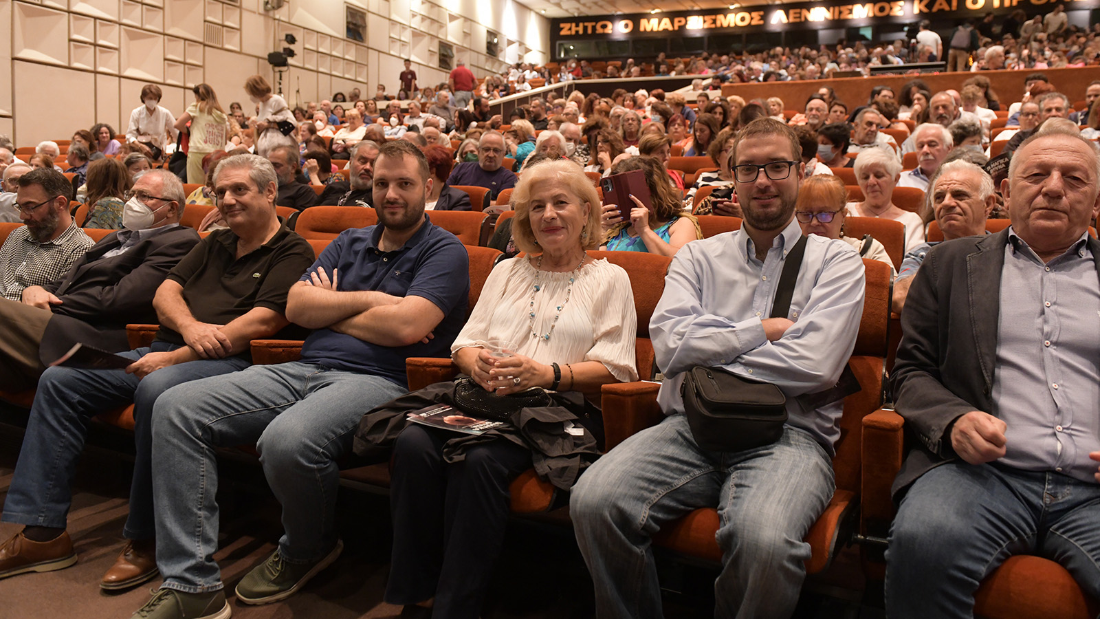 Έπαιξαν οι ηθοποιοί: Δημήτρης Αγαρτζίδης, Δέσποινα Αναστάσογλου, Μαρκέλλα Γιαννάτου, Βίκυ Κατσίκα, Αρης Λάσκος. Παρευρέθηκε αντιπροσωπεία της ΚΕ του ΚΚΕ. Ο γ.γ. της ΚΕ του κόμματος, Δημήτρης Κουτσούμπας είχε θερμή συνομιλία με τον θίασο πριν την έναρξη της παράστασης. Το «παρών» έδωσαν και μέλη της οικογένειας Κοτζιούλα.