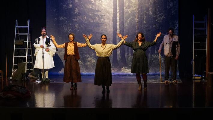 Η παράσταση «Τα Μαγικά Βουνά» της ομάδας Elephas Tiliensis σε σκηνοθεσία και δραματουργία της Δέσποινας Αναστάσογλου και του Δημήτρη Αγαρτζίδη, παρουσιάστηκε στην αίθουσα της έδρας της ΚΕ του ΚΚΕ στον Περισσό, το βράδυ της Δευτέρας.