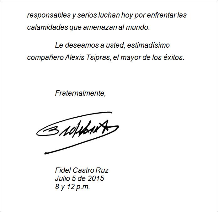 Συγχαρητήρια επιστολή στον Πρωθυπουργό, Αλέξη Τσίπρα απέστειλε ο Φιντέλ Κάστρο.