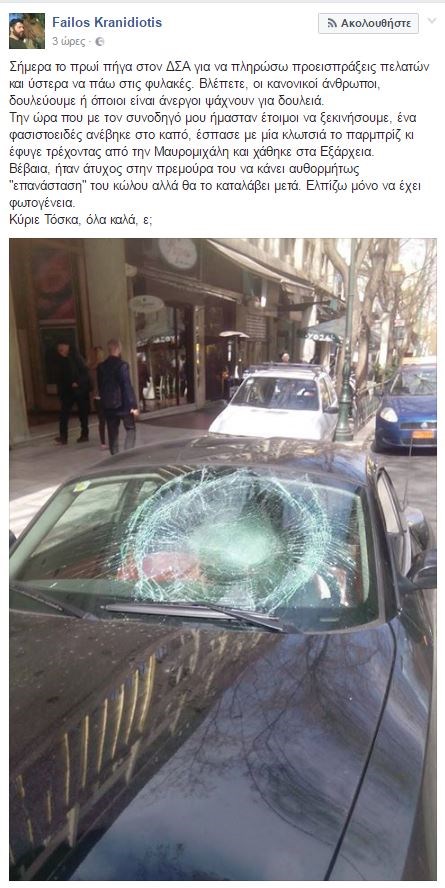 Επίθεση δέχθηκε σήμερα ο πρόεδρος της Νέας Δεξιάς, Φαήλος Κρανιδιώτης, έξω από τα γραφεία του Δικηγορικού Συλλόγου της Αθήνας.Όπως αναφέρει ο ίδιος σε ανάρτηση που έκανε στον προσωπικό του λογαριασμό στο Facebook, ένας άγνωστος ανέβηκε στο καπό του αυτοκινήτου του, έσπασε με μία κλωτσιά το παρμπρίζ και στη συνέχεια έφυγε τρέχοντας.