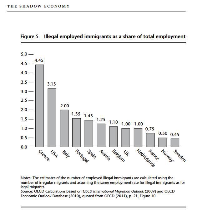 Τη μελέτη του Institute of Economic Affairs για το ποσοστό λαθρομεταναστών που εργάζονται σε κάθε χώρα: Πρώτη η Ελλάδα παγκοσμίως με 4,45%, δεύτερη η ΗΠΑ με 3,15%.