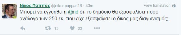 “O κ. Μητσοτάκης δεν θέλει τίμημα και προϋποθέσεις για τα κανάλια,από τώρα ως το νέο διαγωνισμό του ΕΣΡ. Τσάμπα όλα. Για αυτό όλη φασαρία” έγραψε ο κ. Παππάς και συνέχισε: