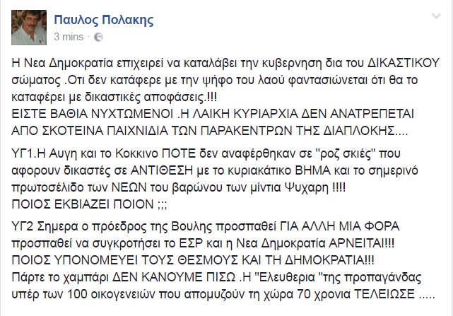 Ολόκληρη η ανάρτηση του κ. Πολάκη: