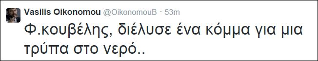 Με ένα αιχμηρό σχόλιο ο Βασίλης Οικονόμου επιτίθεται μέσω twitter στον Πρόεδρο της Δημοκρατικής Αριστεράς, Φώτη Κουβέλη.