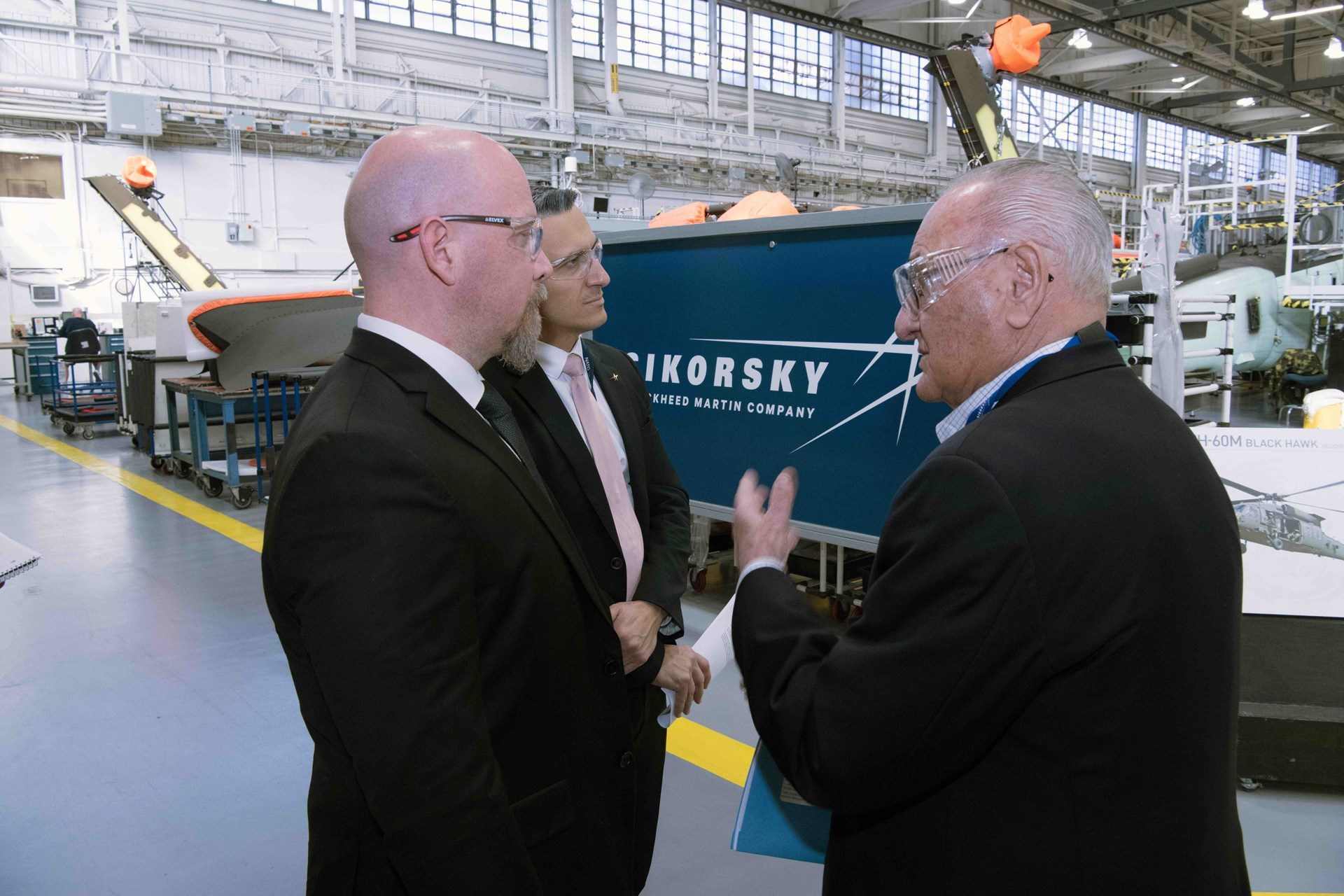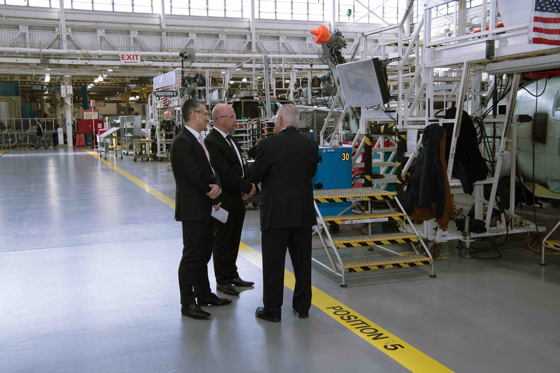 Μαζί με τον Διευθυντή Επιχειρηματικής Ανάπτυξης της Lockheed Martin, Γρηγόρη Κουτσογιάννη και τον Πρόεδρο Dan Libertino μπρος στην γραμμή παραγωγής των BlackHawk