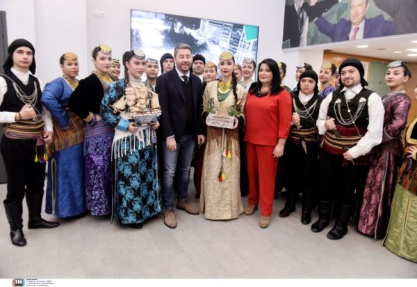 O Νίκος Ανδρουλάκης άκουσε τα κάλαντα από τον Σύλλογο Ποντίων Αγίας Βαρβάρας «Ο Φάρος».
