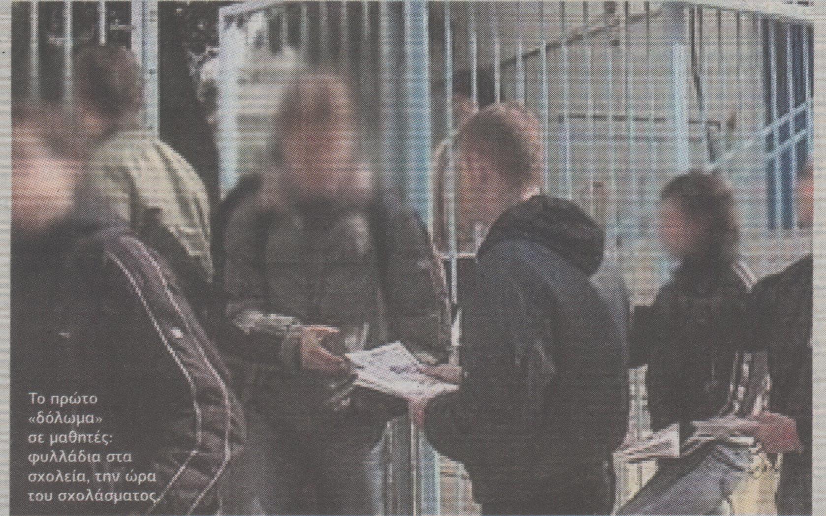 Σε ανάρτησή τους, οι χρυσαυγίτες παραδέχονταν ότι πλησίαζαν μαθητές, την ώρα του διαλείμματος.