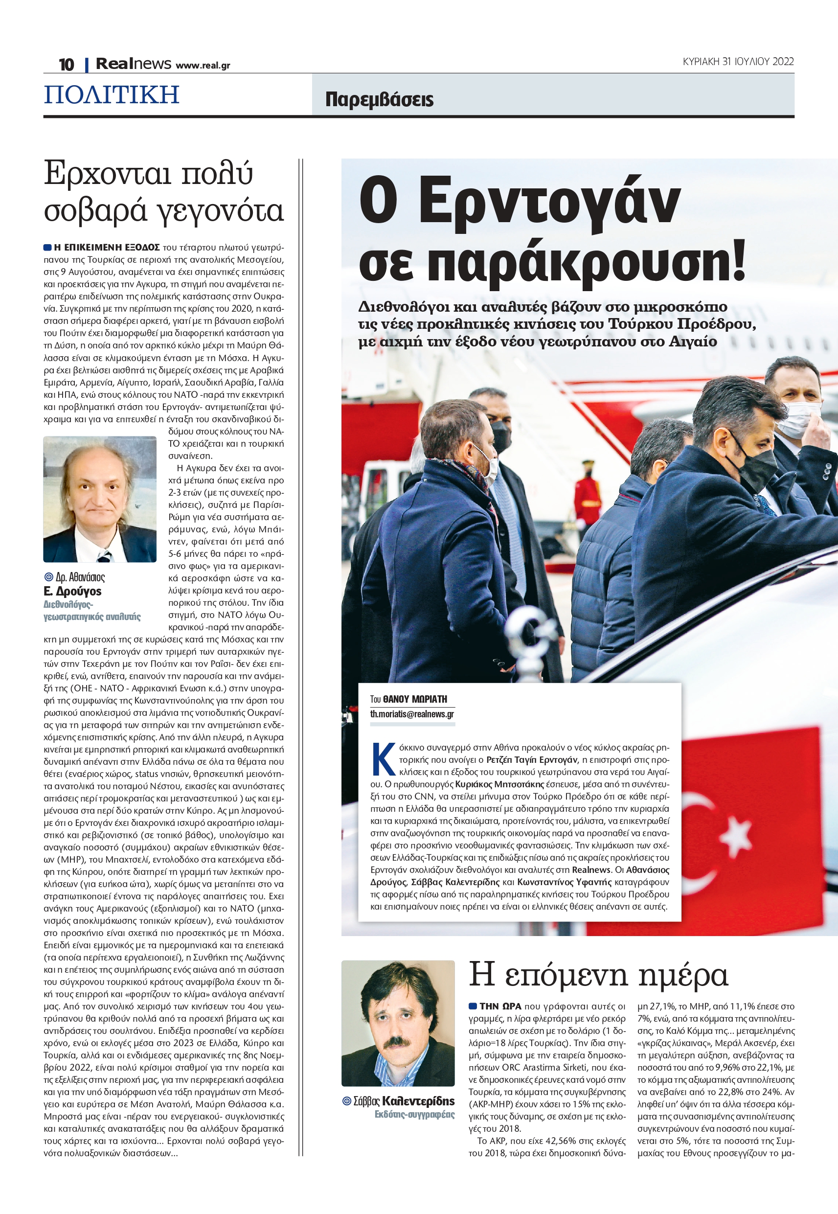 Την κλιμάκωση των σχέσεων Ελλάδας-Τουρκίας και τις επιδιώξεις πίσω από τις ακραίες προκλήσεις του Ερντογάν σχολιάζουν διεθνολόγοι και αναλυτές στη Realnews. Οι Αθανάσιος Δρούγος, Σάββας Καλεντερίδης και Κωνσταντίνος Υφαντής καταγράφουν τις αφορμές πίσω από τις παραληρηματικές κινήσεις του Τούρκου Προέδρου και επισημαίνουν ποιες πρέπει να είναι οι ελληνικές θέσεις απέναντι σε αυτές.