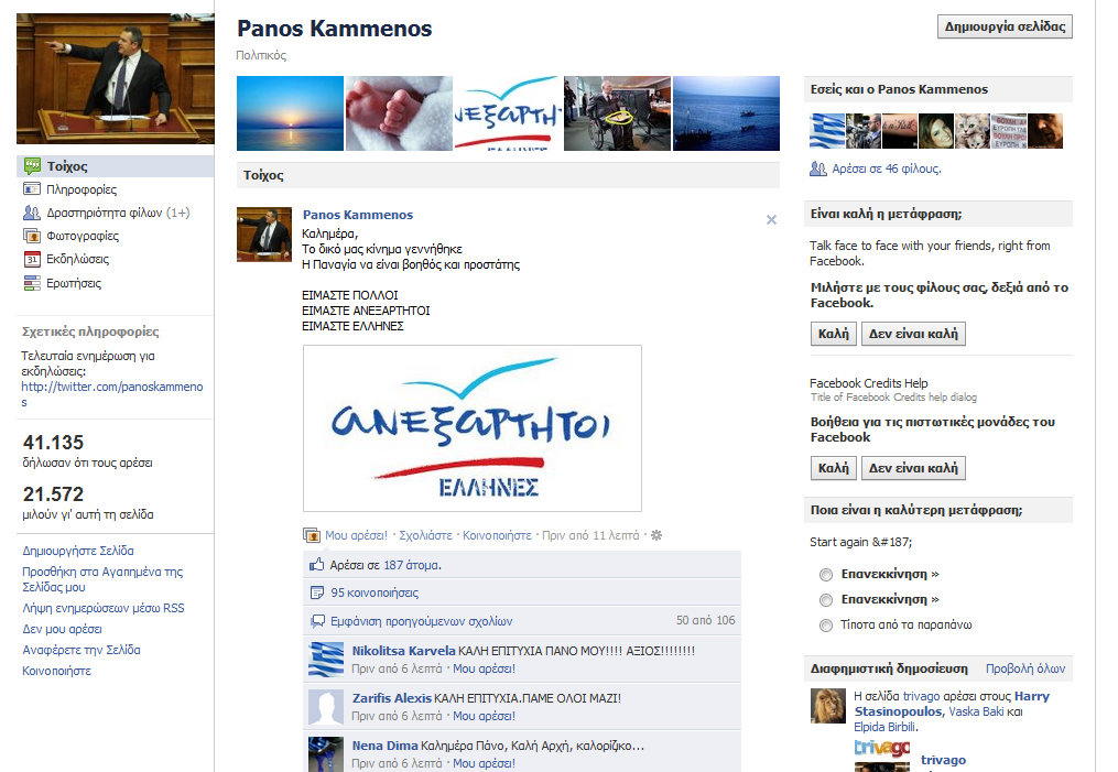 Έτσι ανακοινώθηκε η γέννηση του νέου κόμματος από τον Πάνο Καμμένο. Στο facebook, στη σελίδα του. ΔΕΙΤΕ ΤΗ ΦΩΤΟΓΡΑΦΙΑ: