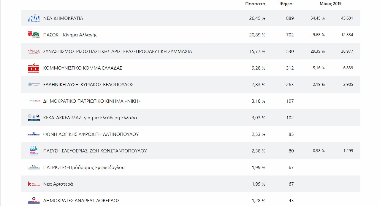 Η ενσωμάτωση βρίσκεται στο 10%. Στην Αιτωλοακαρνανία, η Νέα Δημοκρατία κυμαίνεται στο 26,45%, το ΠΑΣΟΚ είναι κοντά στο 21% στην δεύτερη θέση, ενώ ο ΣΥΡΙΖΑ καταγράφει 15,77%.