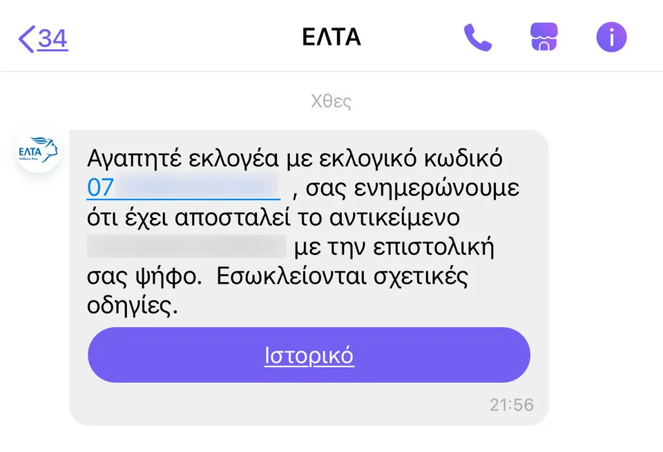 «Αγαπητέ εκλογέα με εκλογικό κωδικό …, σας ενημερώνουμε ότι έχει αποσταλεί το αντικείμενο … με την επιστολική σας ψήφο. Εσωκλείονται ειδικές οδηγίες», είναι το μήνυμα που λαμβάνουν στο κινητό τους τηλέφωνο οι ψηφοφόροι.